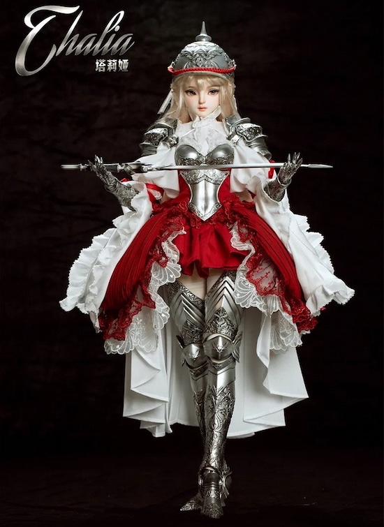The full-set may be ordered with a face-up, wig, eyes, and outfit set. The helmet and an armor set, which includes many armor parts, including armored heel armored lower legs, may be added. A sword and armored hand combo set is also available.
