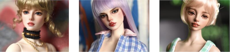 The BJDs may be ordered with a Slim (vol 2), Naturally Posed Slim, or Naturally Posed Glamorous body with small or large breasts in 10 natural and fantasy resin colors.