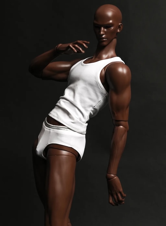 A new large male body by Fairyland may be ordered now. The FeePle76 Male Body comes in natural, beautiful white tan, and deep ebony resin. A Beck or Adrian head, blank or with a face-up, may be added.