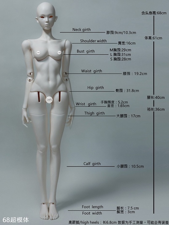 – a pair of normal hands + heel feet + ballet feet + a STAR 65cm size head as gifts