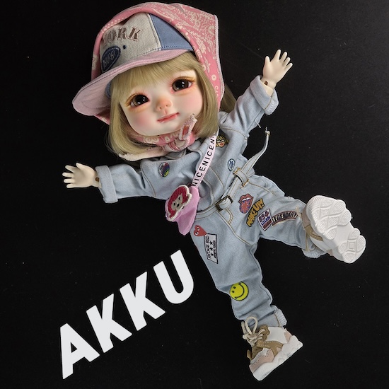 A limited edition Lime line girl may be ordered online from Latidoll. Special ver. Akku can be purchased in normal or peach white resin. She comes with a face-up and a random color pair of glass eyes. The clothing and accessories are not available.