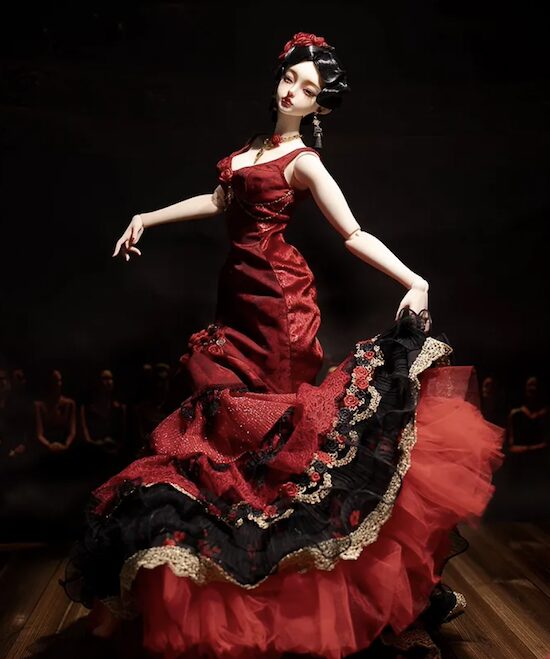 Flamenco dancer Elena is a 70cm doll from Chinese company Asleep Eidolon. She may be ordered with an open or half-sleeping eyes head in opaque normal or translucent peach white, milk white, fairy white, Mia white, peony white, or Mia pink resin.