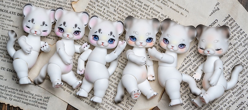 Snow Rapi from CocoRiang will arrive on July 24th, Korea time. The 8cm tall doll is cast in snow white resin. Optional painting in style A (Snow Leopard makeup) or B (Frost Warm makeup) may be added. Extra faceplates (open, gets and closed) are sold blank or painted and may be purchased separately.