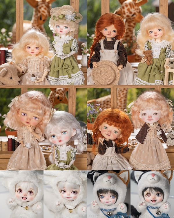 Withdoll introduces SXD Ginny and Iris with a 9-10 inch or 5-6inch head and BWD Calico Cat and Snow Fox Jax and Lou with new 7-8 inch heads. The dolls come in 11 different resin colors. The heads alre also sold separately.