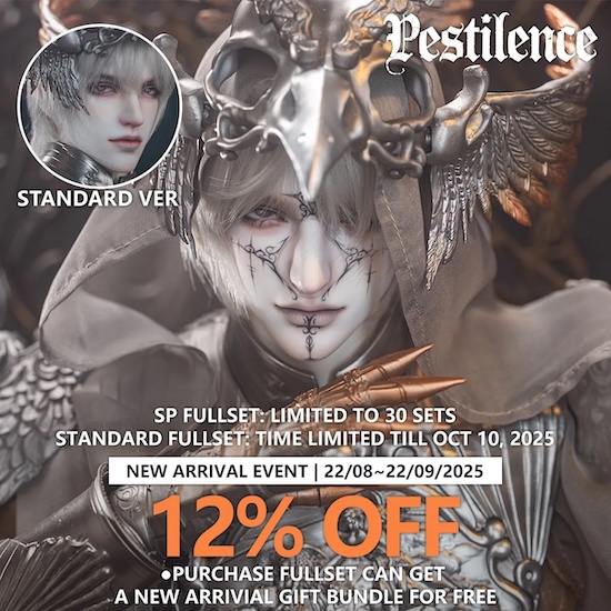 Pestilence is a 76cm Grown line male doll from Ringdoll. He comes in a standard basic version, a standard full-set, an SP full-set, or a double-head (standard & SP) full-set version. Resin colors are white, normal, tanned, and light tan.
