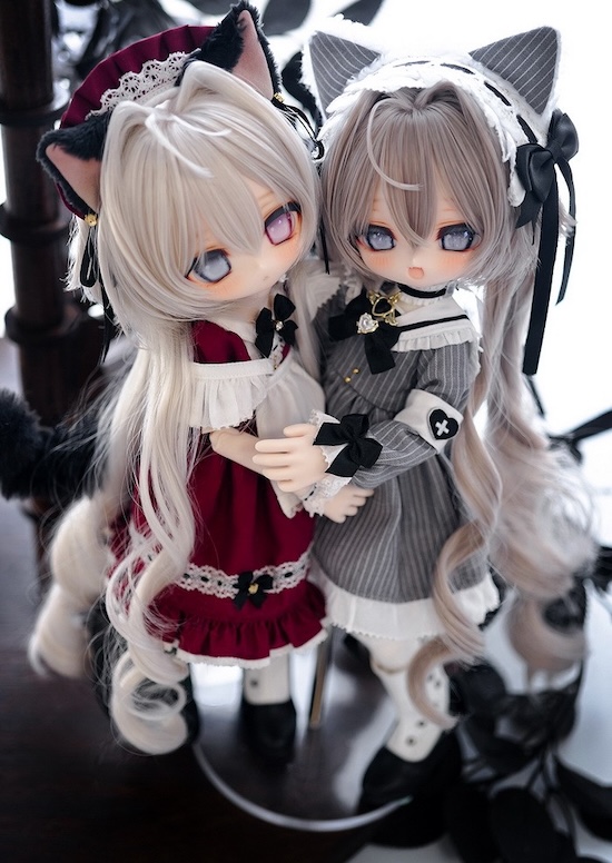 25cm tall Xiao Miu & Xiao Ji have been released by 2D Doll. Both are sold blank in resin colors white, pure white, normal pink, normal yellow, or light tan resin. Each doll may also be purchased with both of the doll heads. Eyes may be added. Both girls come with the new 1/6 Angle Body (Naifufu).