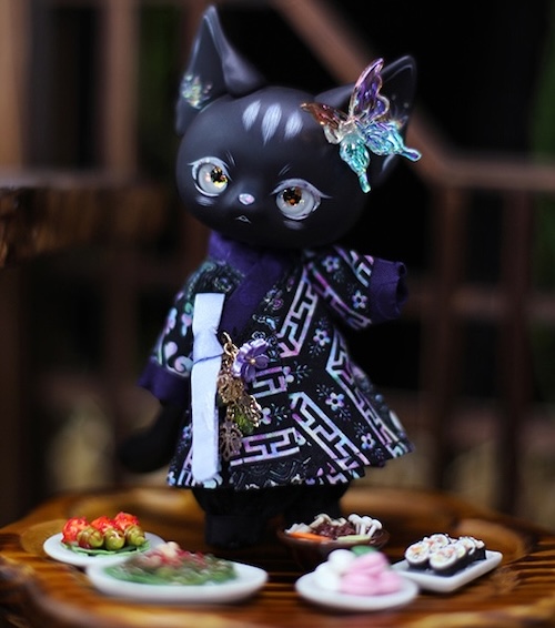 Black resin Picasso Bean is 12cm tall. The doll is sold blank with an optional face-up and outfit set.