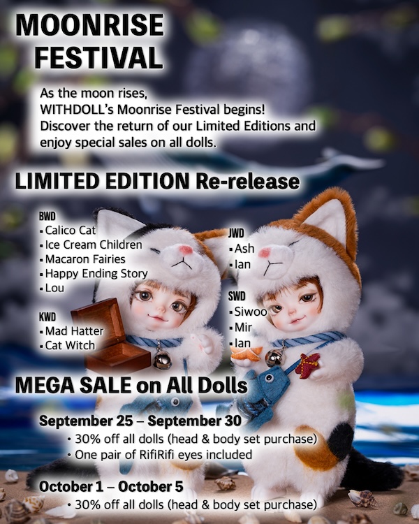 Withdoll Moonrise Festival & Mega Sale September 26, 2025 by bjdcollectasy Withdoll has launched a Mega Sale on all dolls. From the company: