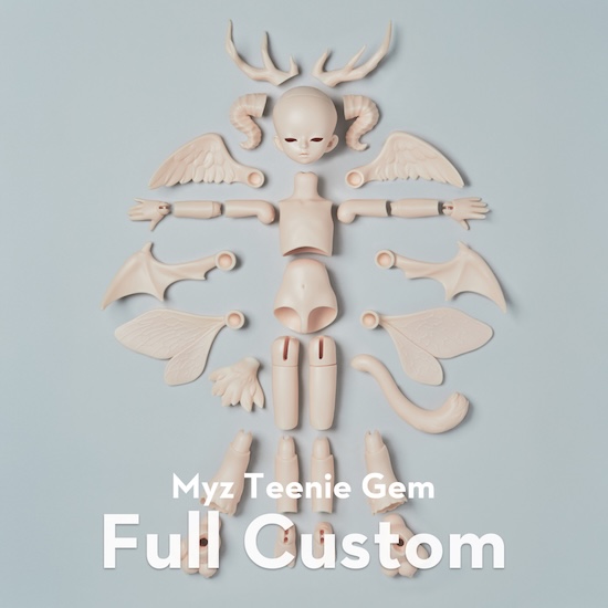Myz Teenie Gem – Full Custom dolls come with many options, including a choice of hands, legs/feet, ears, tail, horns, and wings.