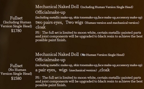 Robotica-Lucius is a new 77cm tall BJD from DollZone. He may be ordered as an all-mechanical version or as a 2-head version with a human head included.