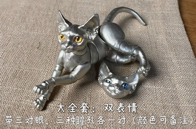 A new palm-sized pet Sphynx cat from Minstrel Painting comes in gold or silver. The dolls are 3D-printed with ultra-fine print quality and hand-sanded. Two face-plates and a pair of eyes are included. Customers may select their preferred eye color. The cat may be ordered from BJDivas.