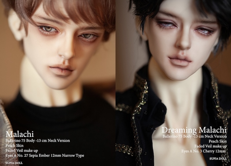 A new SupiaDoll male doll, Malachi, has arrived. Two Malachi heads are available: a basic and a dreaming version. Customers may order one or both heads for their doll. He comes in a 65cm or 75 version.