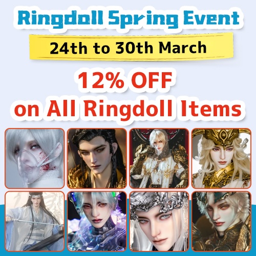 Legend Doll is holding an event for Ringdoll products on the website. Various dolls and accessories are included in the sale.