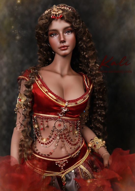 A new limited-edition SartoriaJ, Kali, has been released. The BJD comes with a choice of 59 Dpn, 61 Aph, 64 Mtn, or 65 Ath body with a choice of breast size/type in resin colors rosewater, peach cream, Sonoran beige, or Decan hazel. Optional mobility thigh joints may be added.