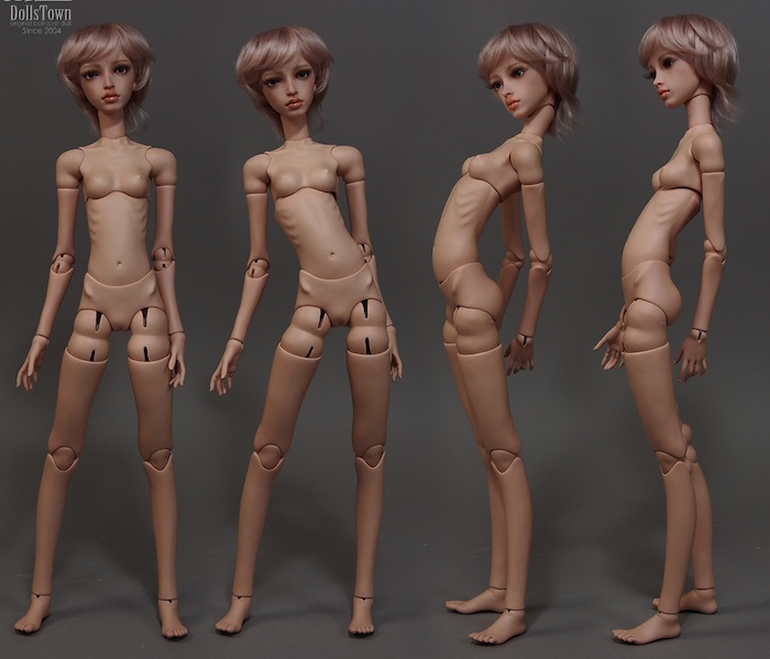 The full doll comes with a wide choice of body options. They include a short or long neck, a torso with a variety of hip and breast measurements, short or long arms and legs, basic or splayed hands, and flat, heel, or ballet feet.