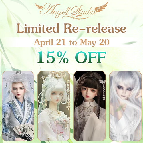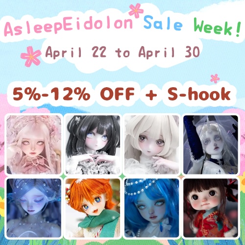 For a very short time, Legend Doll is holding discount events for dolls from Alseep Eidolon and Myou Doll. An Angell Studio event will run until the end of May.
